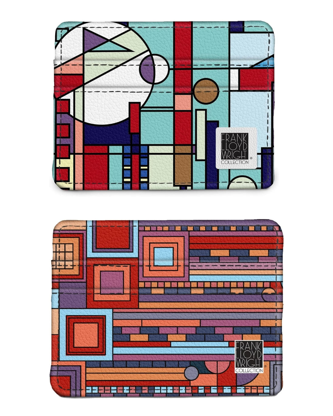 These slim wallets feature designs from Frank Lloyd Wright. Measuring just 4"w x 3"h, x 1/4" these wallets make it easy to stash your cash and cards right in your pocket, or keep them organized in a larger tote. Each is crafted around a durable aluminum base, and features a Central Slot and 4 Exterior Card Slots. The RFID protection guards you from possible identity theft.
