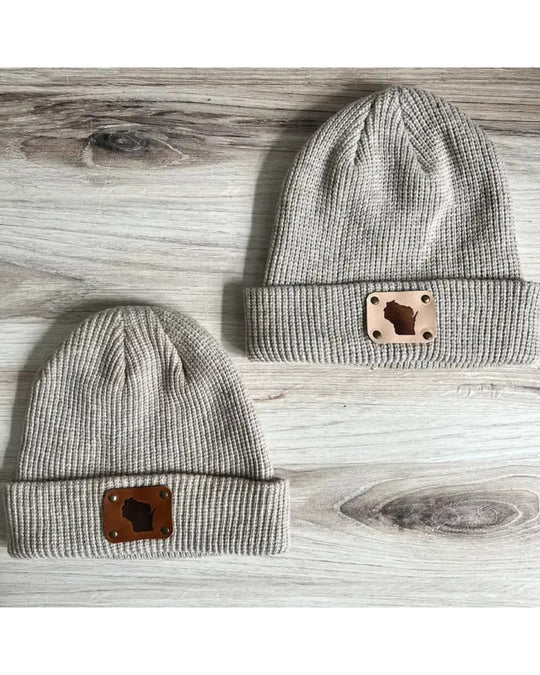 Grey - Wisconsin Beanie Hat with Leather Patch
