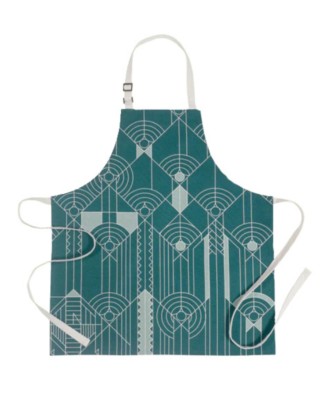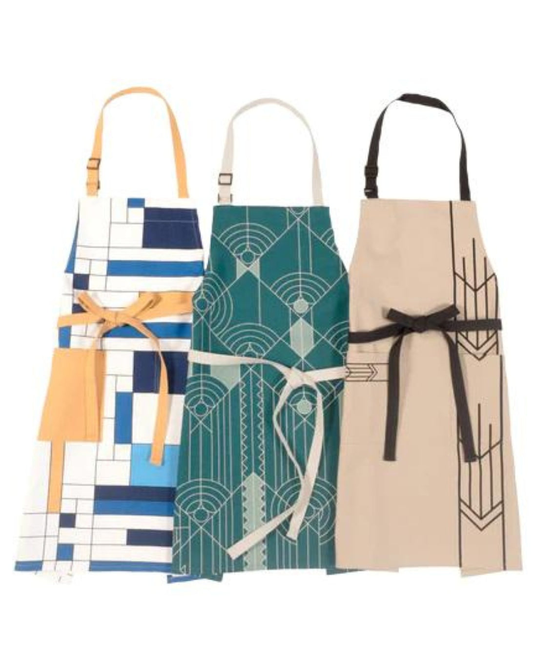These 100% cotton printed aprons have beautiful and elegant printed designs inspired by the work of iconic architect Frank Lloyd Wright. This collection modernizes some of Frank Lloyd Wright's quintessential designs, bringing his celebrated compositions, and KAF Home's textile expertise, into today's home. Generously sized at 32" x 28". Tie waist and adjustable neck strap for the perfect fit.