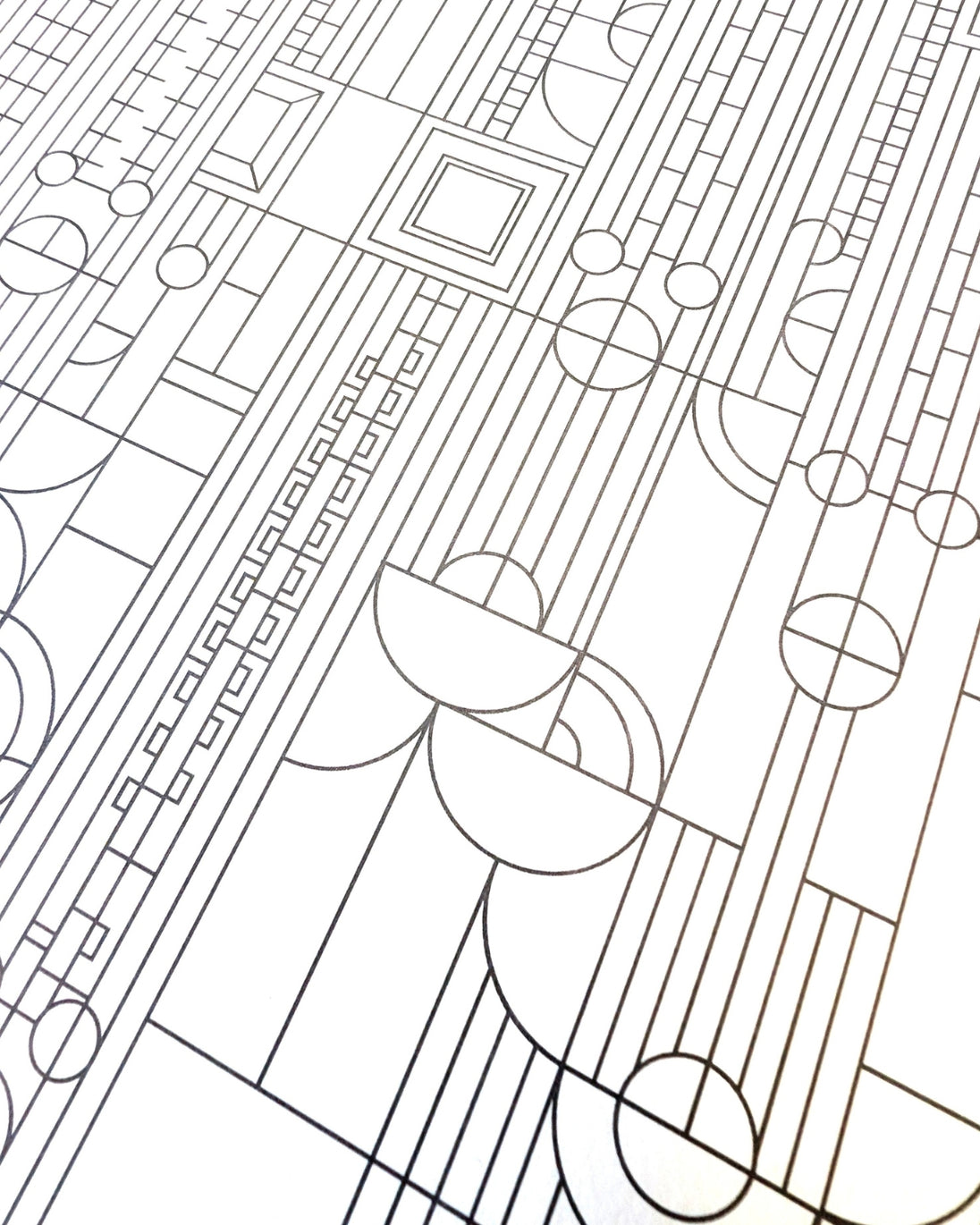 Coloring Book featuring a selection of 12 Frank Lloyd Wright patterns.