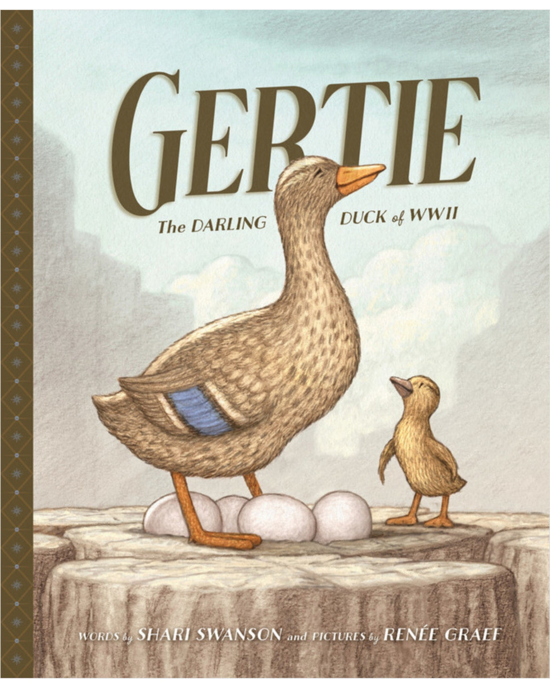 In 1945, the attention of the United States, along with the rest of the world, was focused on World War II. After more than five years of fighting, downcast, war-weary people were looking for signs of hope of a better future. One April morning, a duck searching for a nesting spot lands on a tall post sticking out of the Milwaukee River. Situated near a busy drawbridge and the noisy city of Milwaukee, this was an unlikely, precarious spot for a soon-to-be-mama duck to build her nest. But that is exactly where Gertie (named by a local reporter) decides to make her home and lay her eggs. Once local newspapers report the story, crowds begin visiting the bridge to watch Gertie and speculate how she will safely hatch her babies. Soon, news outlets around the world are carrying the hopeful tale of the plucky duck, raising spirits, and giving readers a shared sense of community. Illustrated by Renee Graef - the same artist who brought Lulu and Rocky to life!