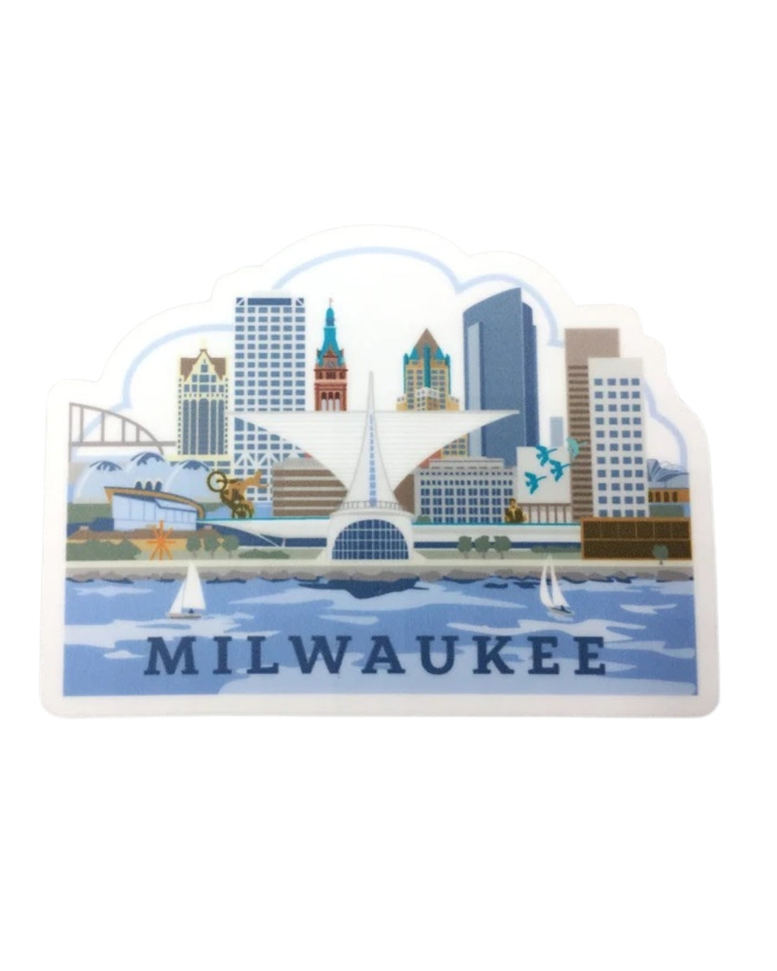 This 3" vinyl sticker by Cindy Lindgren is waterproof with a strong bond but still removable. The design features the Milwaukee skyline.