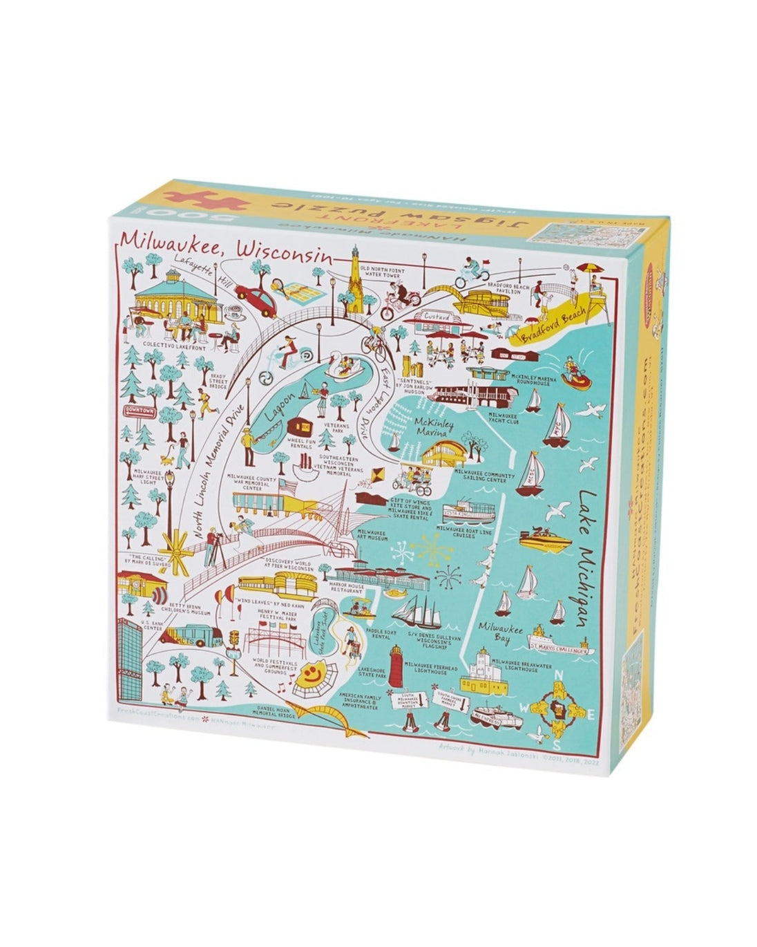 The Milwaukee Lakefront Puzzle is a 500-piece jigsaw puzzle highlighting downtown Milwaukee, Lake Michigan and all of the lakefront attractions. Puzzle information: 500 pieces, 19" x 19" when completed.