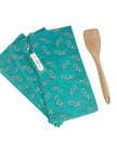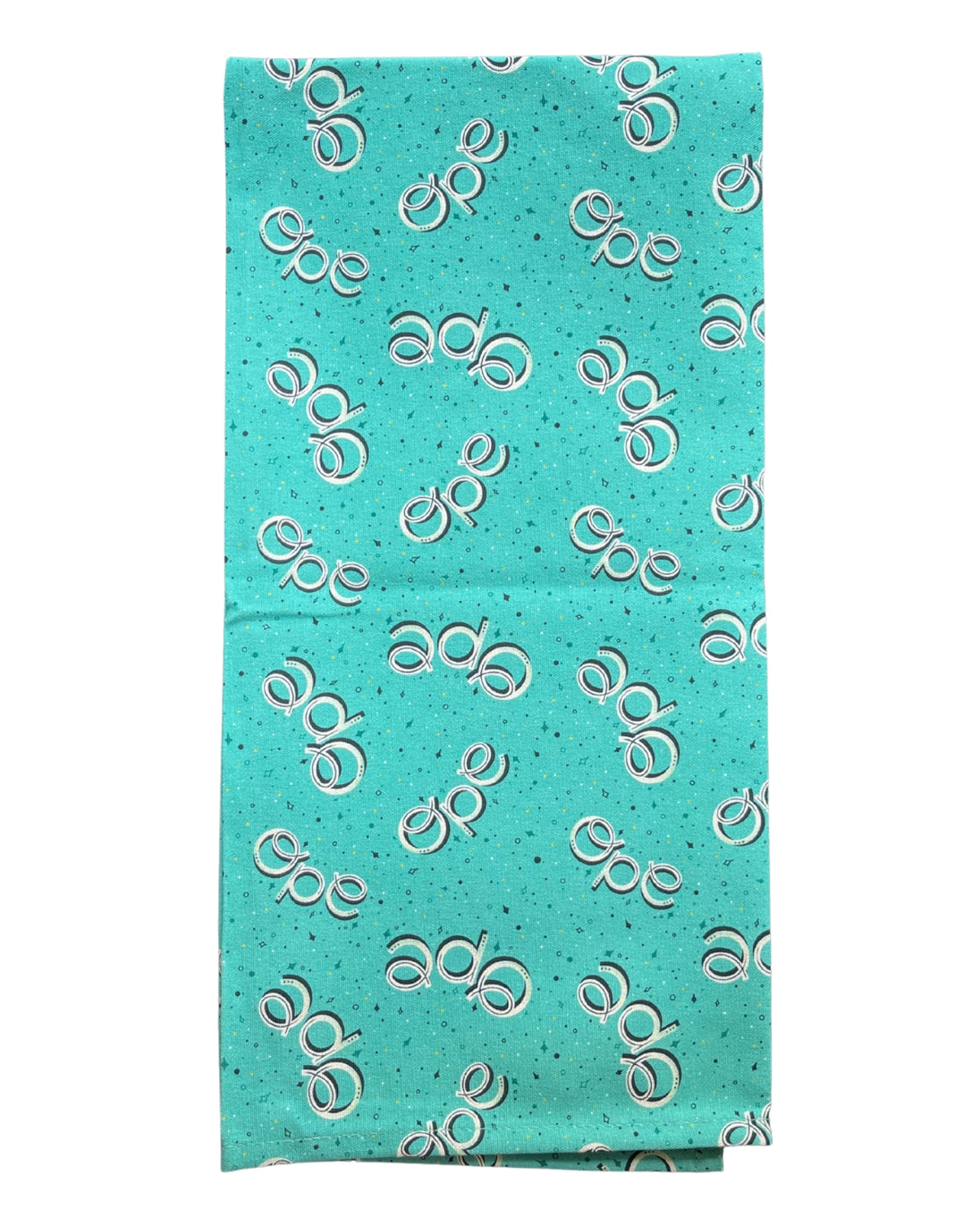 19"x17" 100% Cotton Twill Tea Towel with teal OPE illustration. Each towel is folded, and has attached tag with care instructions.