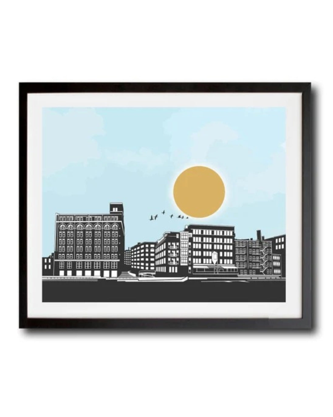 This skyline design of the Historic Third Ward is printed on Fuji Crystal Archive Paper by Milwaukee artist Konkada. The 8 x 10"size ships flat between cardboard.