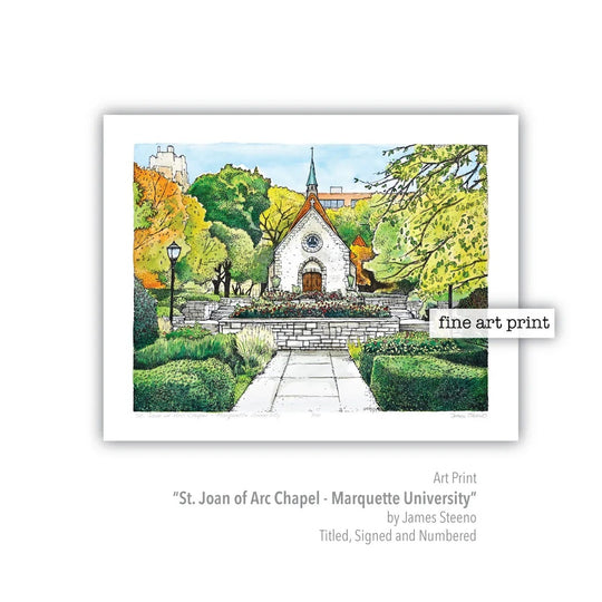 8" x 10" print by James Steeno featuring the St. Joan of Arc Chapel on Marquette's campus. Digital print on archival paper using archival pigment inks, true to the subtleties of the watercolor medium.Regular price $27.00Quick view -