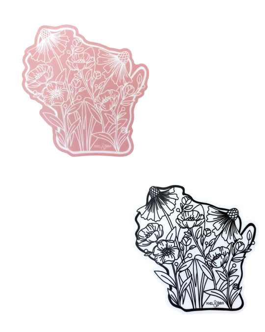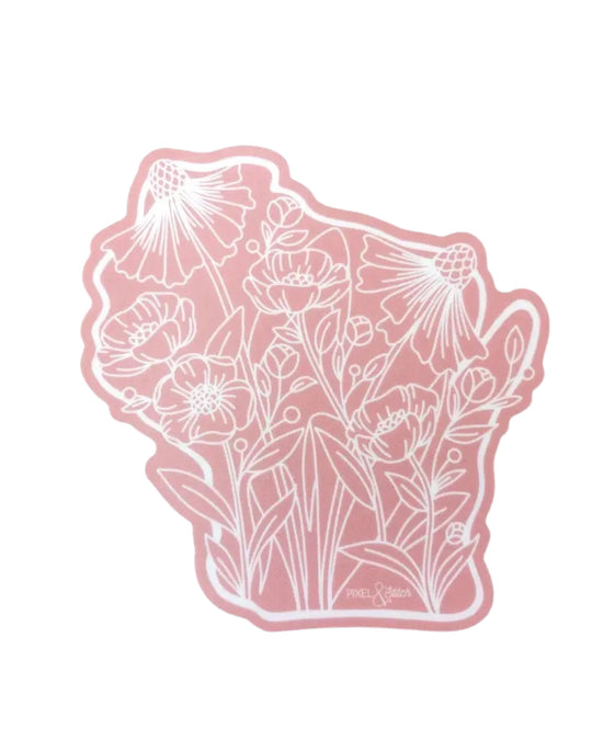 Floral Wisconsin 3 inch waterproof vinyl decal, illustrated by Pixel & Stitch. Available in white on pink background or black with white background. Made in U.S.A. Pixel & Stitch is a local women-owned business based in...Regular price $4.00Quick view