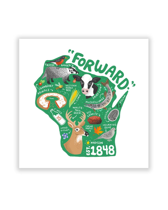 Did you know that Wisconsin’s State Domestic Animal is a Dairy Cow?? And our State beverage is Milk! I thought for sure it would be beer. Art by Lauren Marvell This print is 8.25"x8.25" - it...Regular price $13.00Quick view -