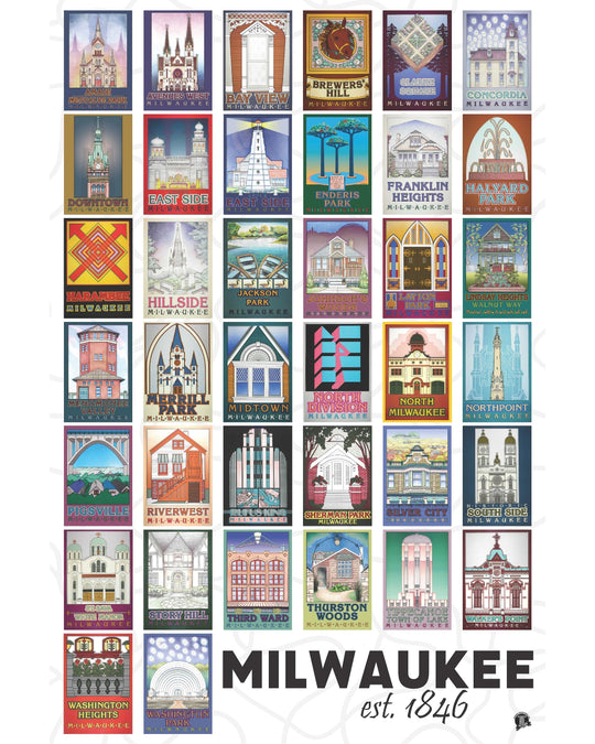 Celebrate all of Milwaukee with this brand new poster! Measuring 24 by 36 inches, this beautiful print features all 38 neighborhood posters created by artist Jan Kotowicz.Regular price $20.00Quick view -