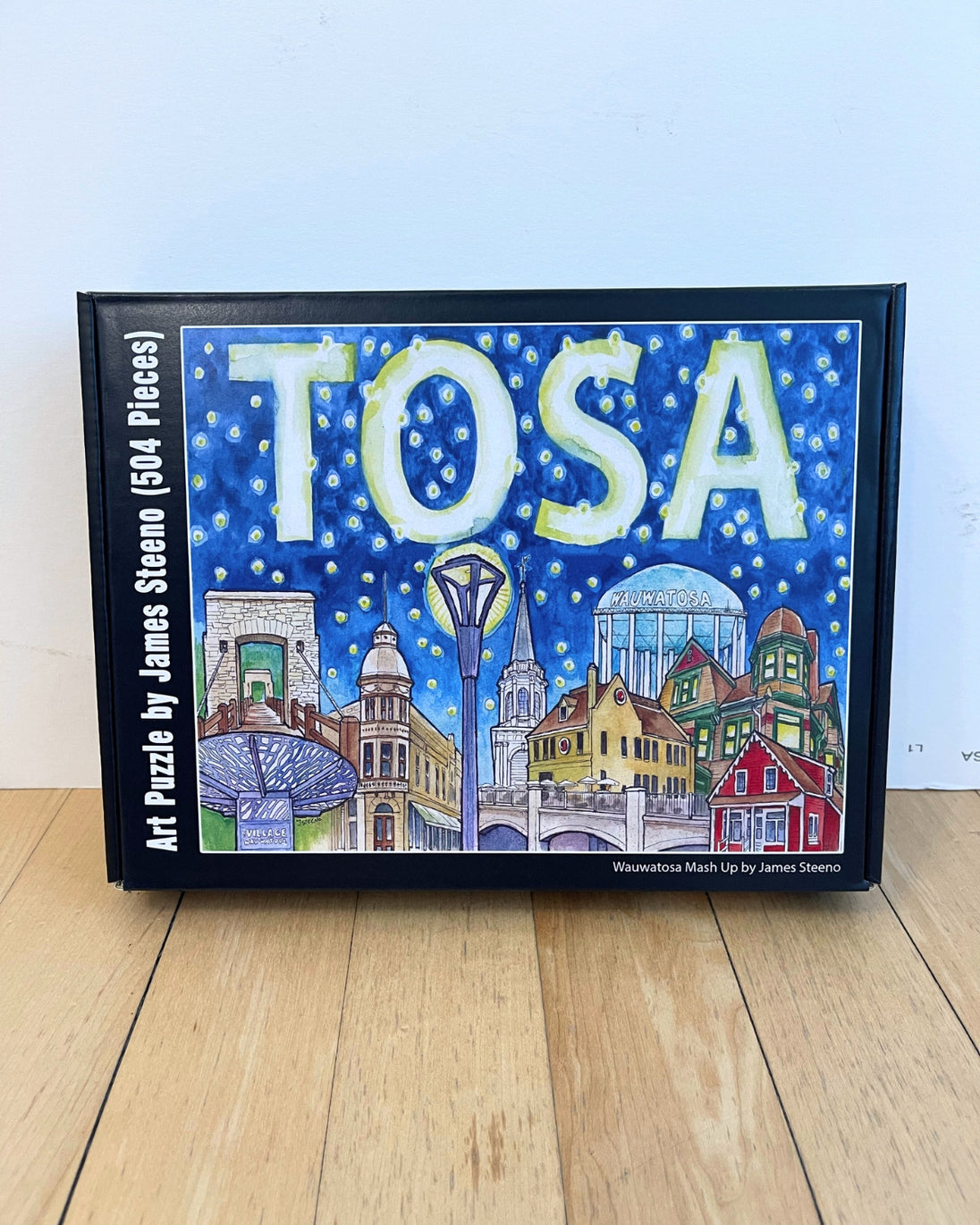 Celebrate the iconic landmarks of Wauwatosa with this 504 Piece puzzle. This puzzle is a collaboration between Historic Milwaukee, Inc. and James Steeno Gallery LLC.