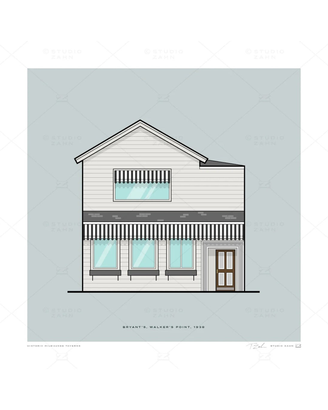 Art print of Bryant’s, which lays claim to being Milwaukee’s oldest cocktail lounge, opened in 1938 by mixologist Bryant Sharp—before mixology was even a thing.