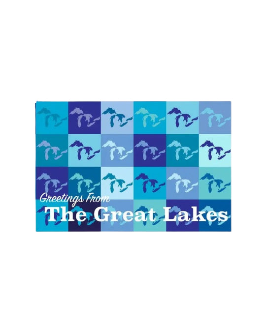 Send a little bit of the Great Lakes around the world with this bright postcard. Covered in blue toned Great Lake silhouette featuring Lake Michigan, Lake Erie, Lake Superior, Lake Huron, and Lake Ontario. 4x6 Inches...Regular price $1.50Quick view -