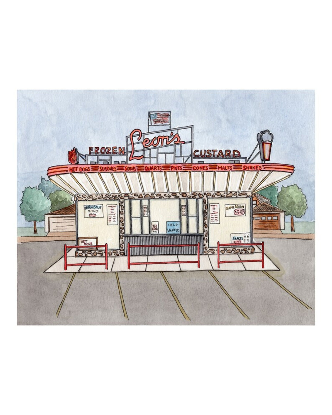 8 " x 10" art print on matte paper. Original watercolor and ink print artwork created by Josh Leverence of Lynndale Print Shop, located in Milwaukee, WI.