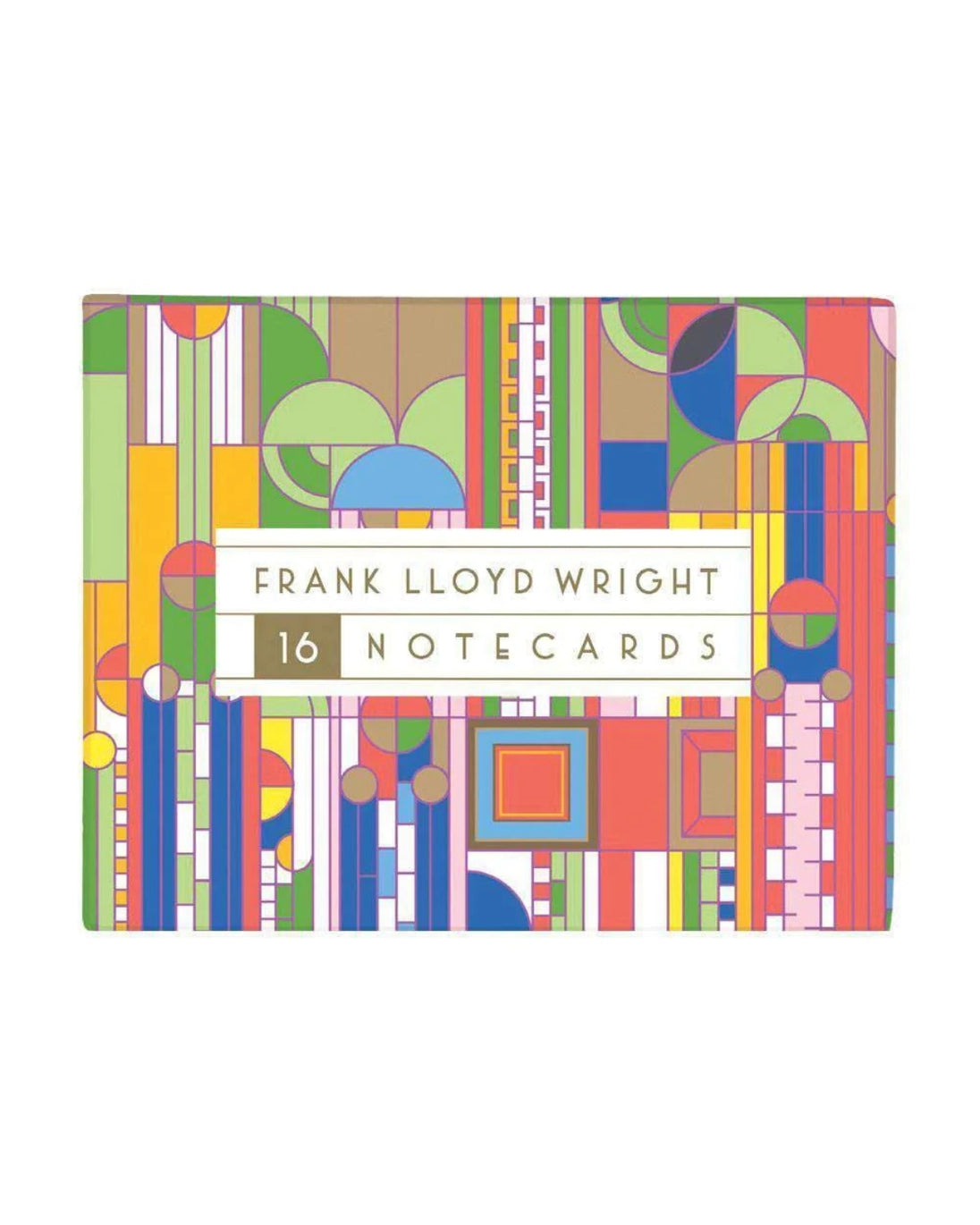Frank Lloyd Wright Designs Greeting Assortment Notecard boxed set from Galison features Wright's geometric decorative designs in bright color and gold foil stamp. This set features a sliding drawer box which includes 16 gold embellished 5" x 3.75" cards in 4 decorative designs and 17 envelopes.