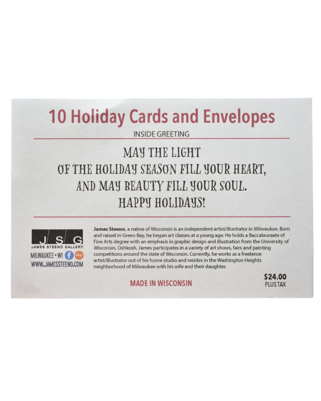 Set of 10 notecards and envelopes. Inside Message: May the light of the holiday season fill your heart, and may beauty fill your soul. Happy Holidays!