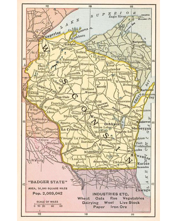 Translation missing: en.product.product.quick_view.button_label Map of Wisconsin Postcard