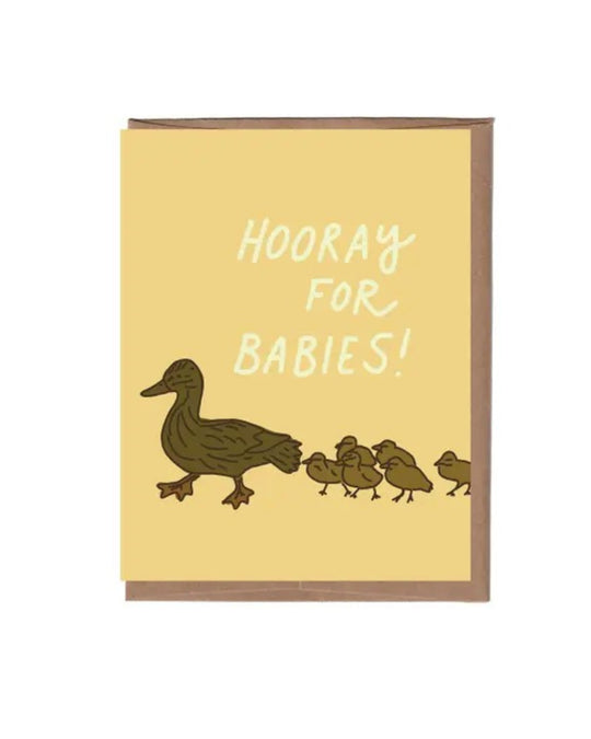 Hooray for babies! Featuring baby duckling. Flat printed on FSC certified paper from an original handcut collage, drawing, or print. 4.25" x 5.5" folded card with recycled kraft envelope. Blank inside Made in USARegular price $6.00Quick view -