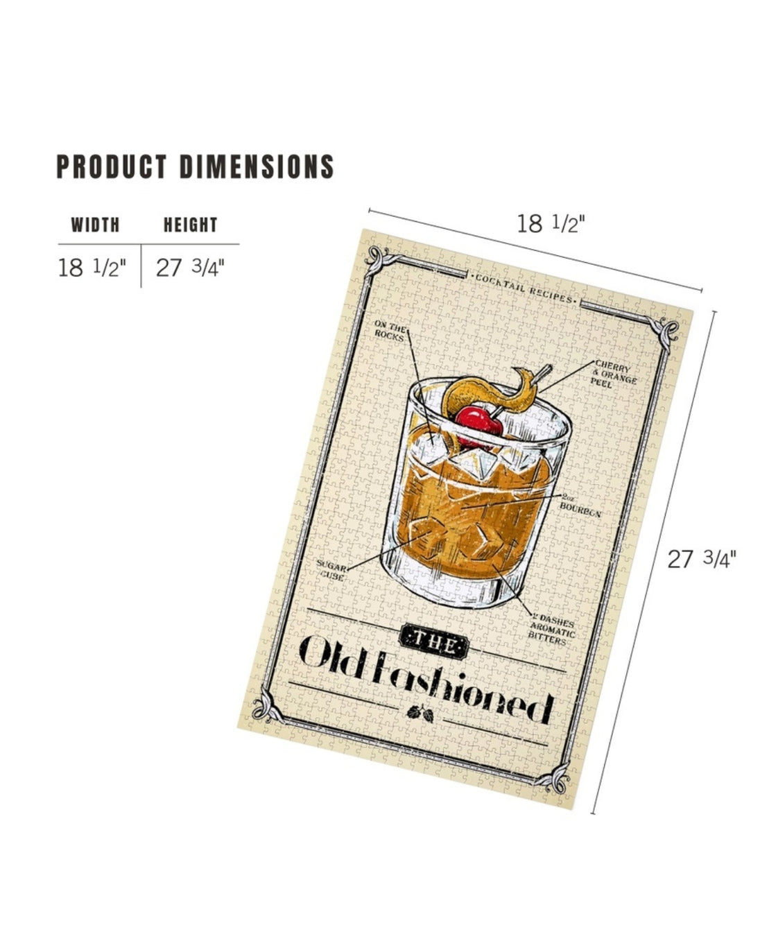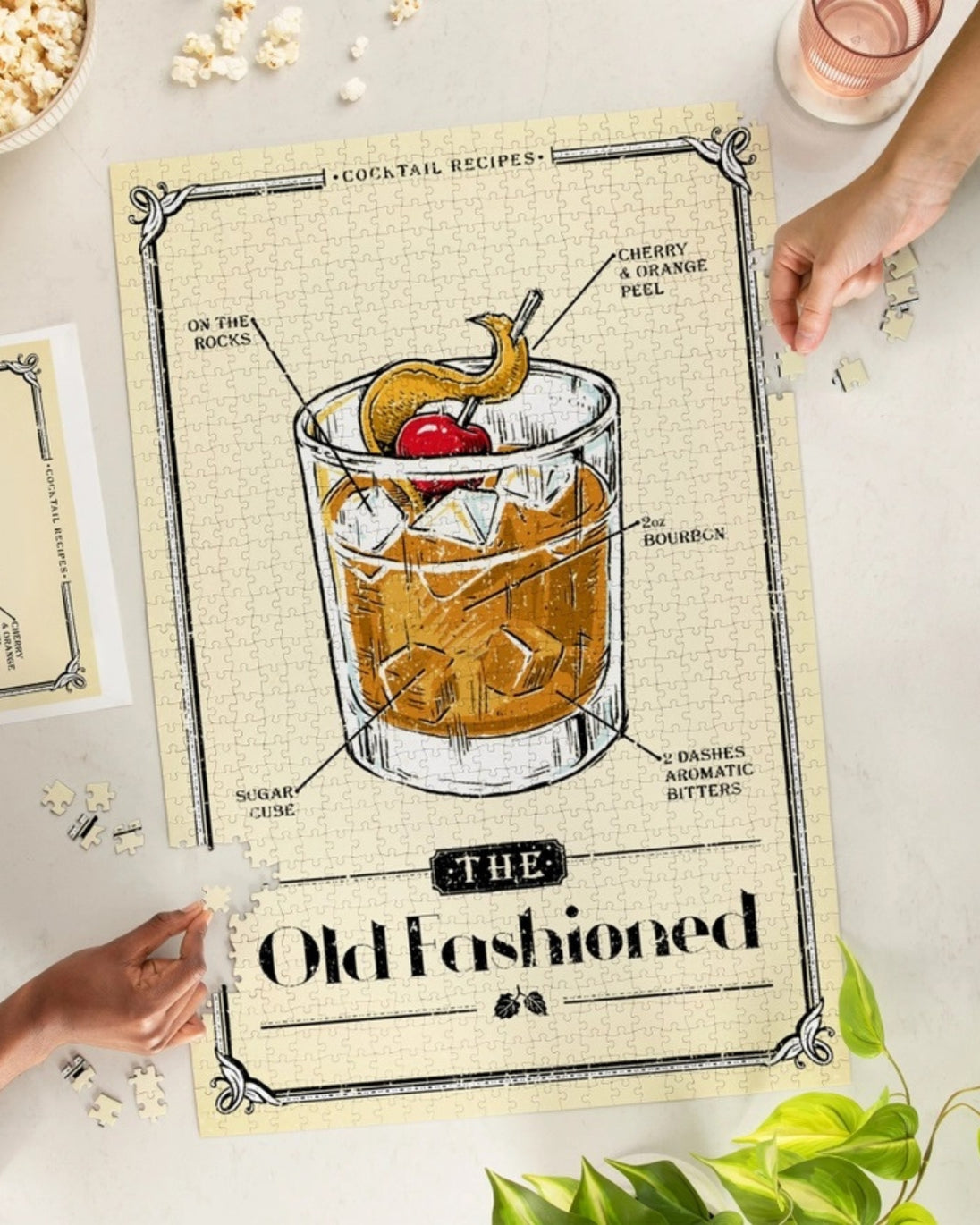 This 1000 piece puzzle features artwork that breaks down the anatomy of the Old Fashioned cocktail. This puzzle uses eco-friendly ink and packaging, FSC certified paper, recycled materials, sourced responsibly and planet friendly.