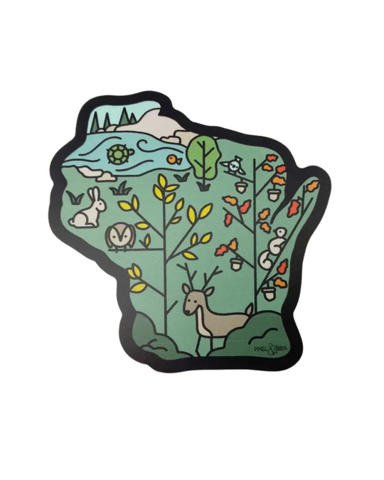 Woodland Wisconsin 3 inch waterproof vinyl decal, illustrated by Pixel & Stitch. Made in U.S.A. Pixel & Stitch is a local women-owned business based in New Berlin, WI.Regular price $4.00Quick view