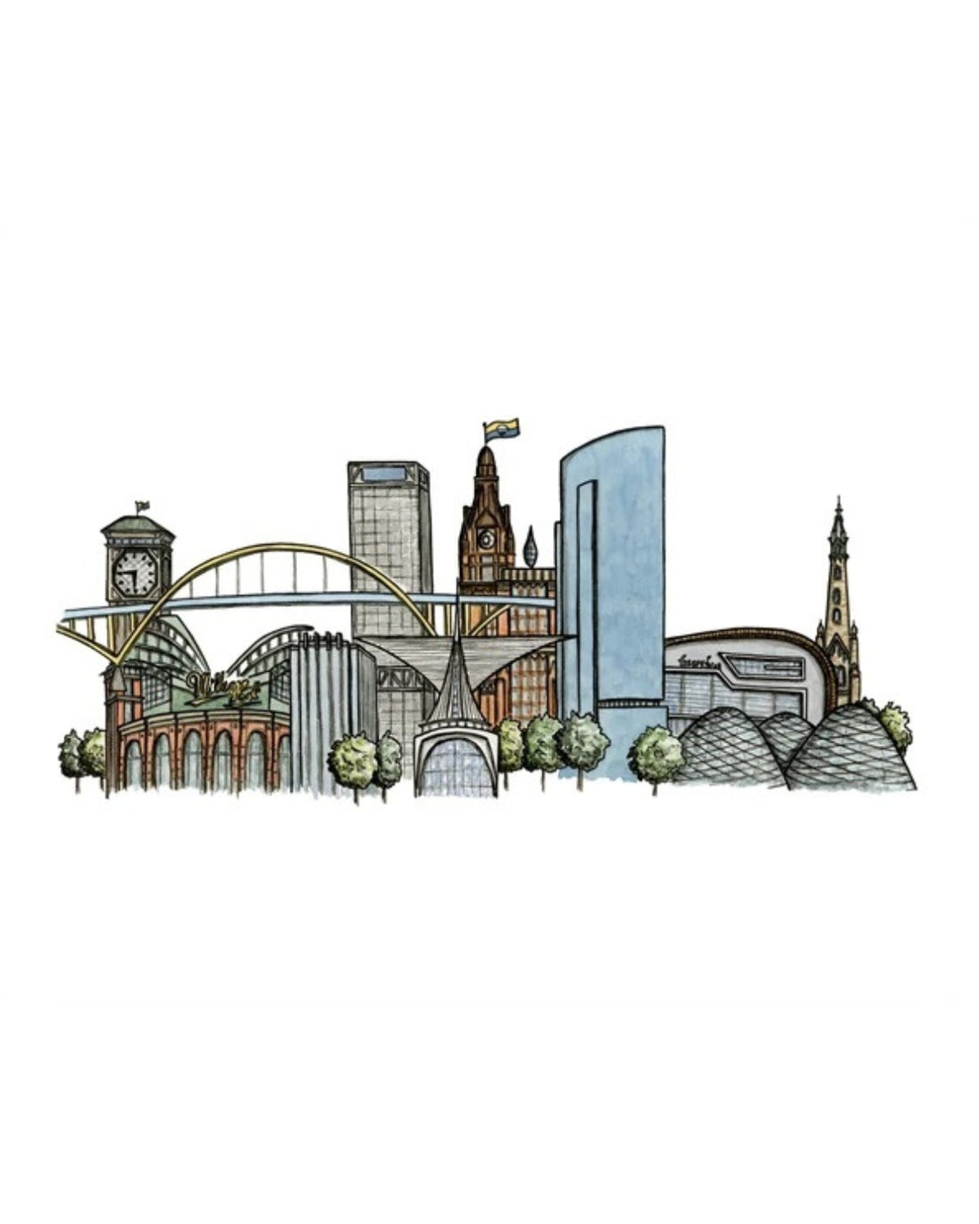 This piece captures the heart and soul of Milwaukee by featuring many of the city's famous landmarks. Included in the collage of landmarks you'll see: the Milwaukee Art Museum, Hoan Bridge, Fiserv Forum, American Family Field, the Allen-Bradley Clock Tower, the Mitchell Park Domes and the North Point Water Tower.