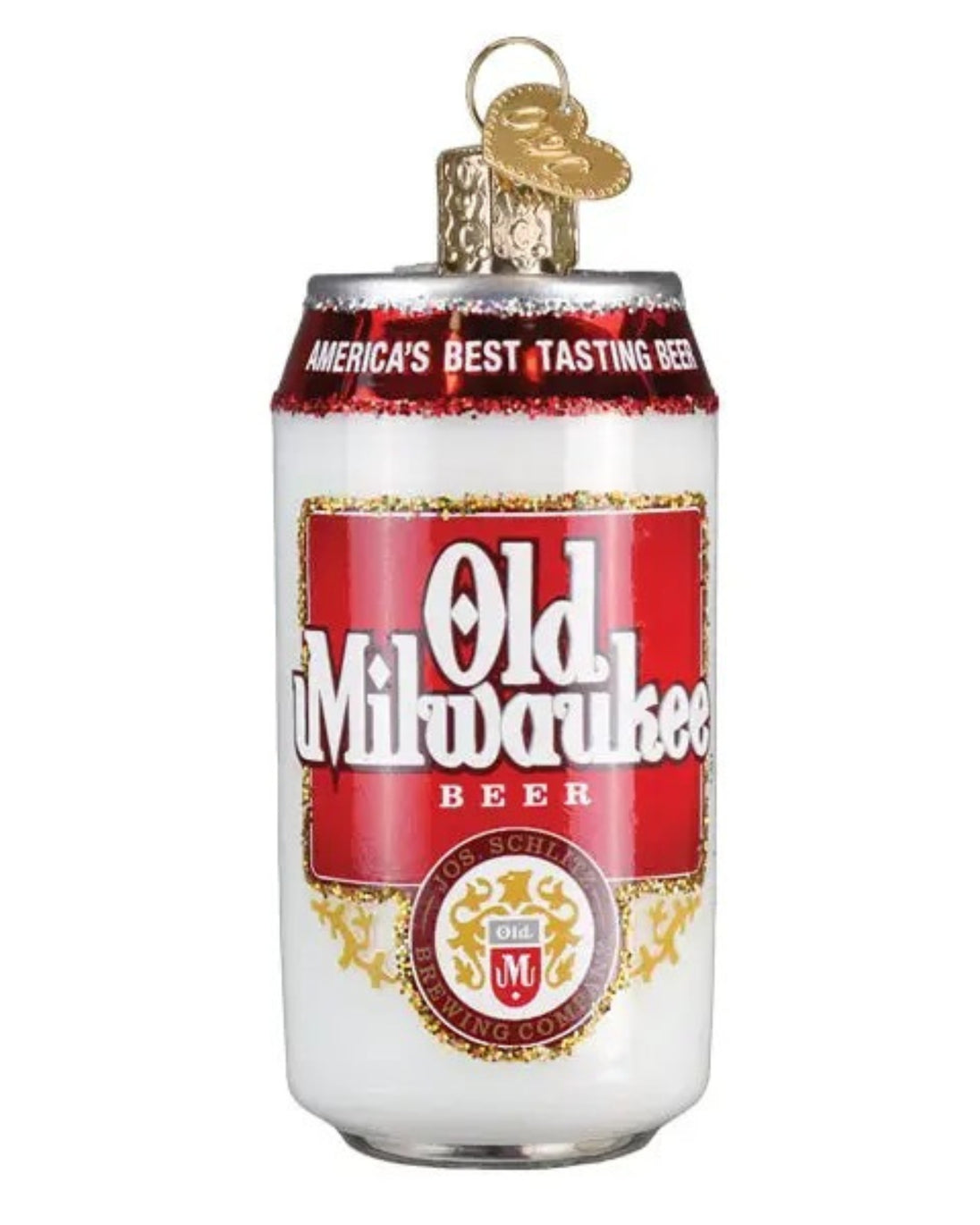 Bring a touch of nostalgia to your holiday decor with the Beer Can Ornament from Old World Christmas. Crafted using techniques that date back to the 1800s, this ornament is mouth-blown into a carved mold and filled with liquid silver for an exceptional shine. Artists hand-paint and glitter each design in a series of detailed steps, bringing vibrant color and character to life. This unique piece not only decorates your tree but also sparks joy, preserves memories, and celebrates the timeless spirit of Christmas. Make your holidays meaningful, beautiful, and unforgettable with our heirloom-quality ornament.